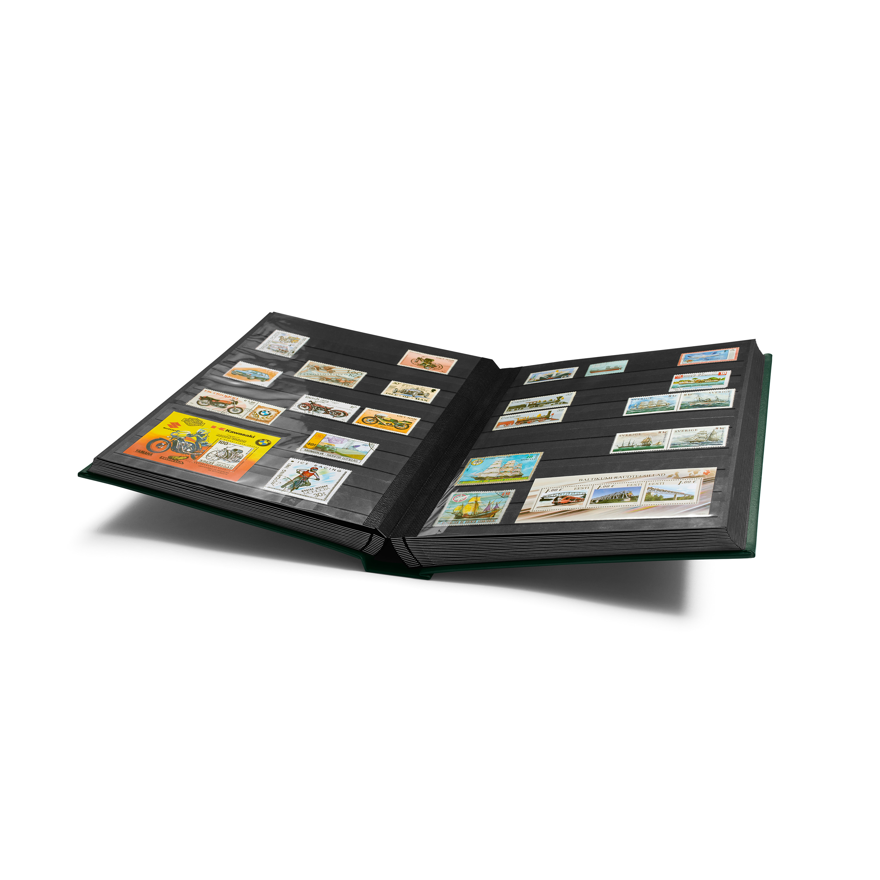 Classeur de format A4 PREMIUM avec 64 feuilles noires. Couverture ouatinée cuir*, double articulation toilée. Matériau des bandes: feuille spéciale sans acide ni plastifiant.