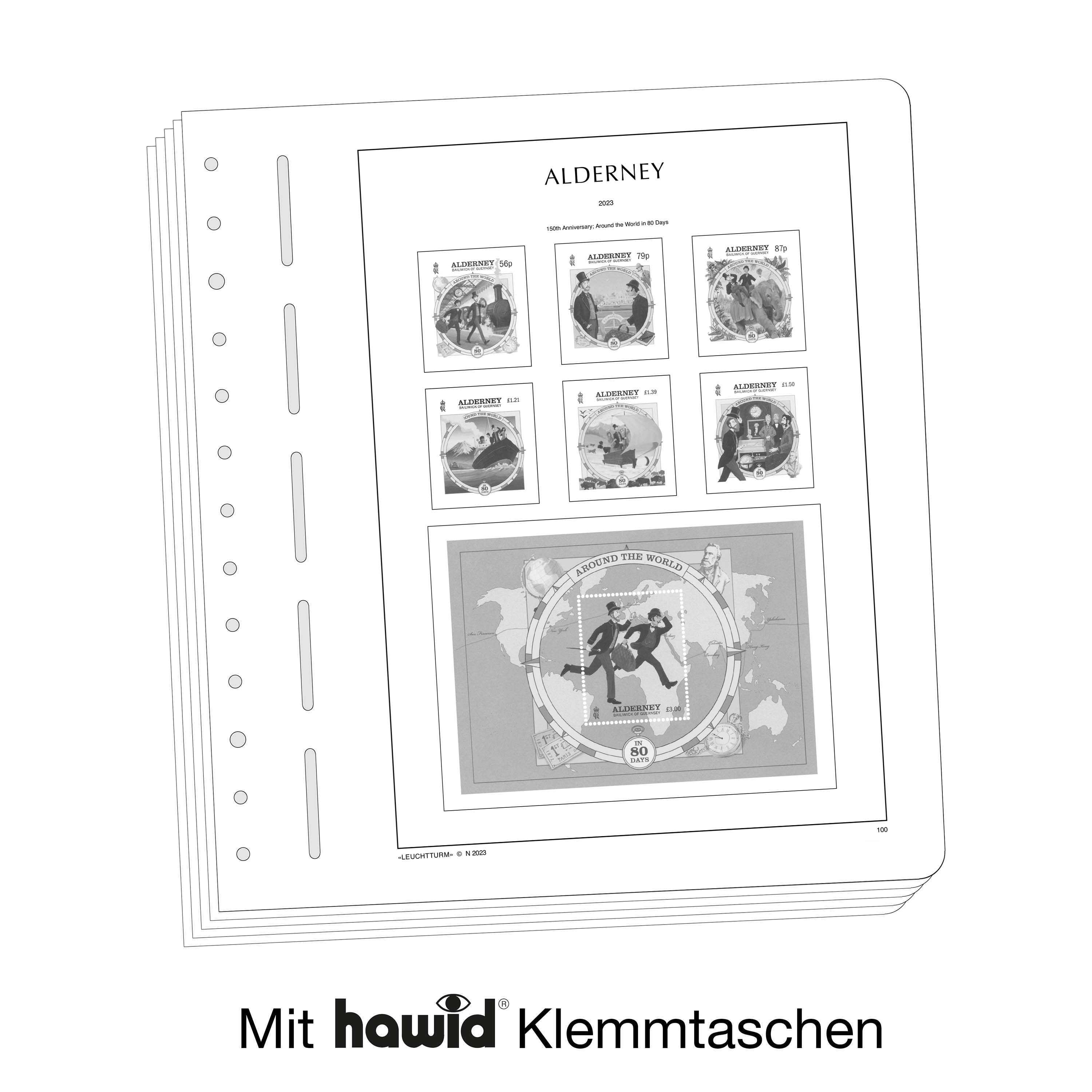 Les feuilles LEUCHTTURM (format 270 x 297 mm / système à 13 trous) sont imprimées par offset, en noir et blanc, avec un grand souci de précision, sur du papier stable, sans bois ni acide (170 g/m 2 ). Nous renonçons volontairement à une impression en couleurs. Vous pouvez ainsi plus facilement savoir quels timbres manquent encore dans votre album. Des pochettes de protection, fabriquées à partir d'une feuille de polystyrène traitée anti-reflet, transparente et sans plastifiant acide, découpées au format des différents timbres, sont collées sur les pages des albums. Les pochettes de protection maintiennent les timbres bien en place, sans qu'il soit nécessaire de les coller. De plus, elles assurent une protection optimale contre la poussière et divers dommages.