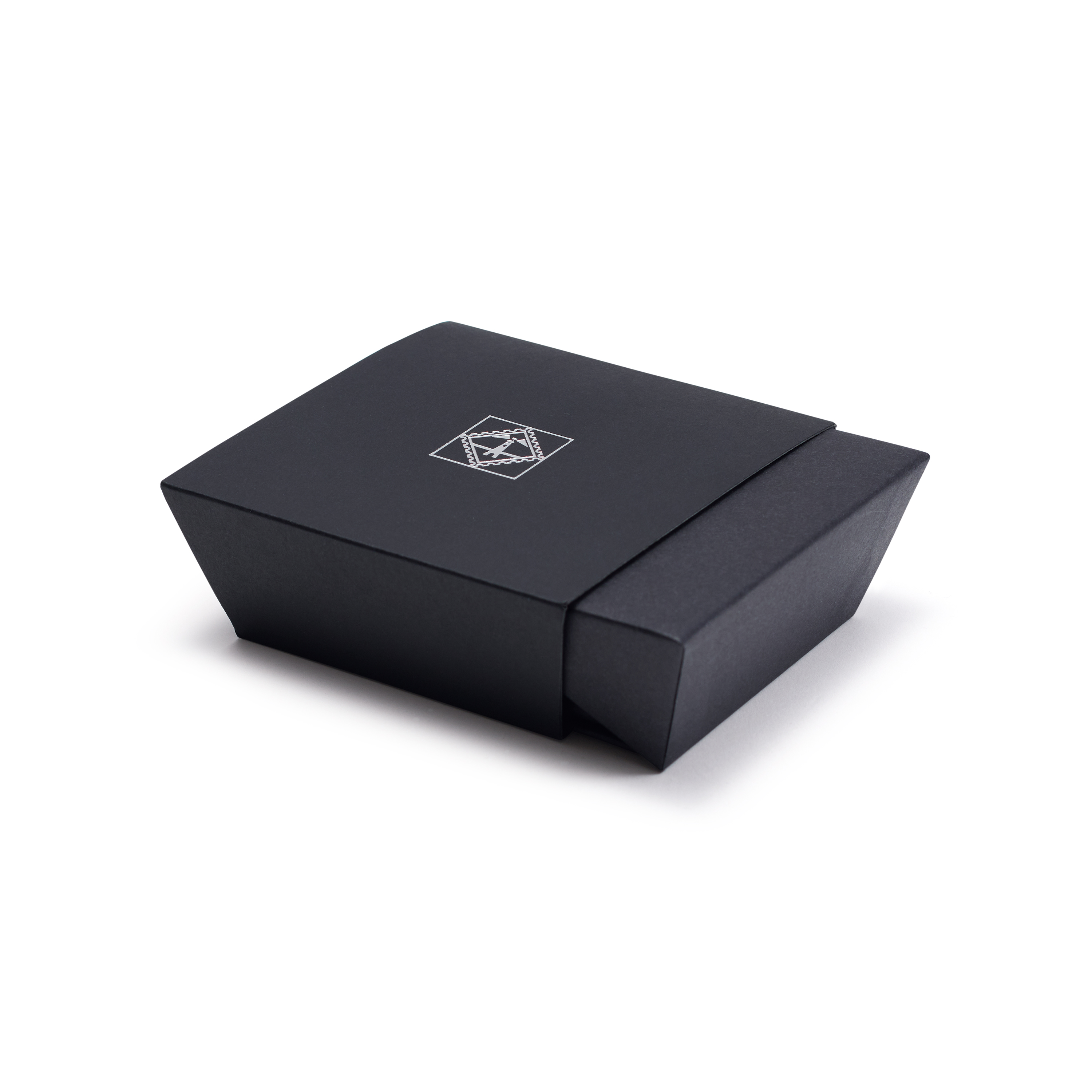 Une fermeture magnétique discrète garde l'étui bien fermé pendant le transport. Le cœur de l'étui est constitué par l'insert parfaitement ajusté, fabriqué en papier moulé sur mesure.